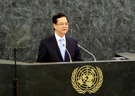 Thủ tướng Nguyễn Tấn Dũng phát biểu tại Phiên thảo luận chung Đại hội đồng Liên hiệp quốc khóa 68, sáng 28/9 (theo giờ Việt Nam).
